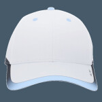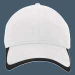 * 100% polyester * Breathable * Wicks moisture * Mid-profile, structured crown * Black undervisor * Contrast eyelets * Pro-stitched finish * Contrast gradient binding * Hook-and-loop adjustable